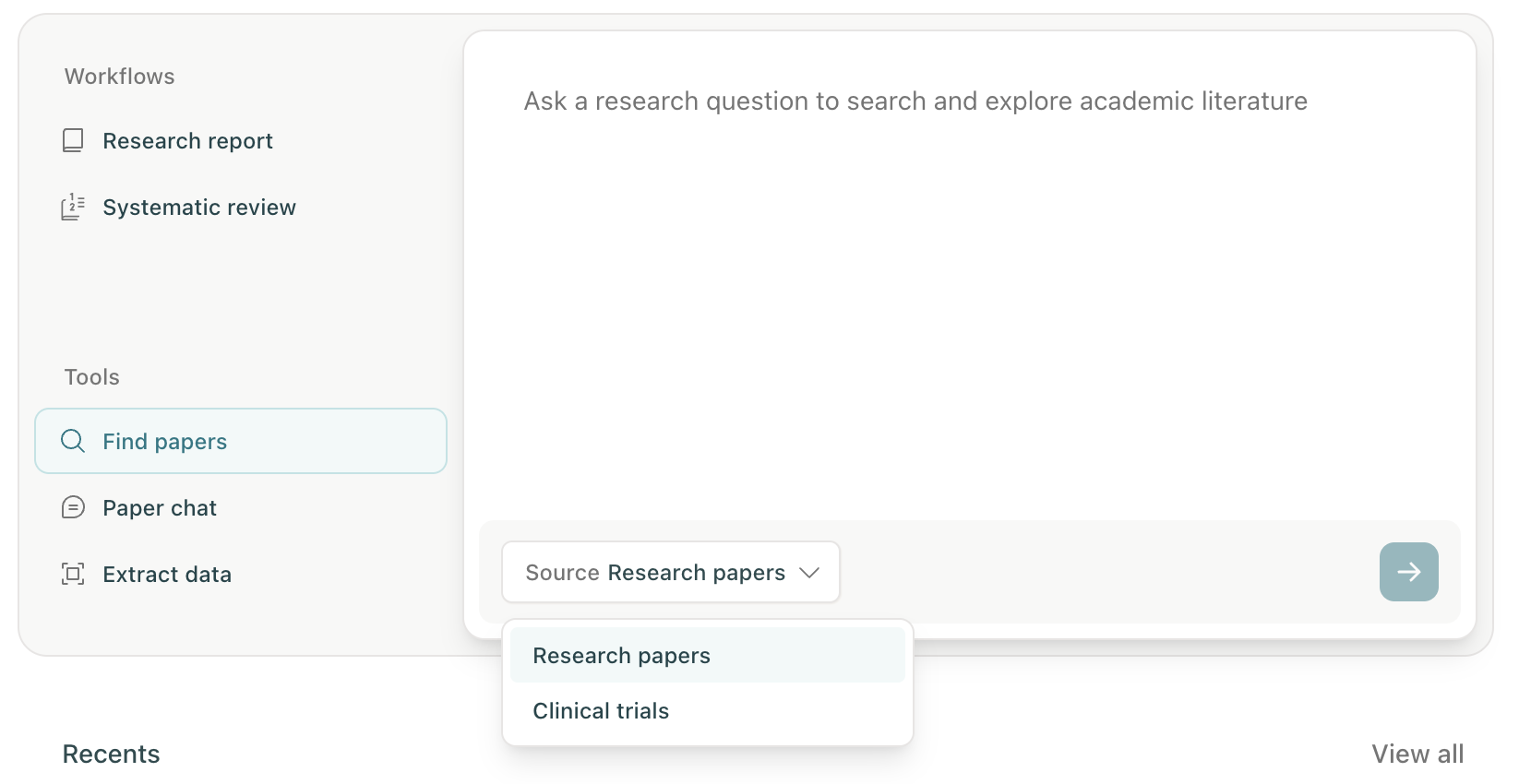 Elicit allows you to search both research papers and clinical trials. This guide explains how to effectively search and filter clinical trial data.